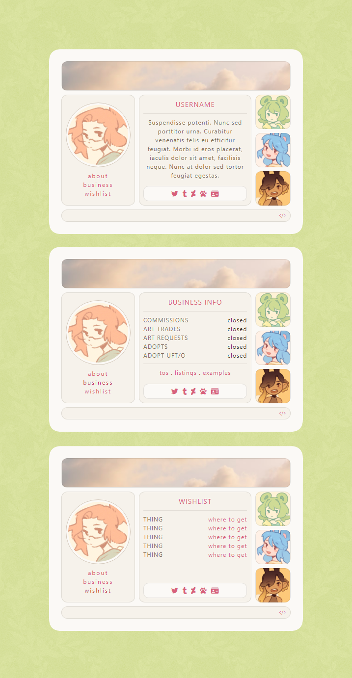 4 Toyhou.se HTML templates