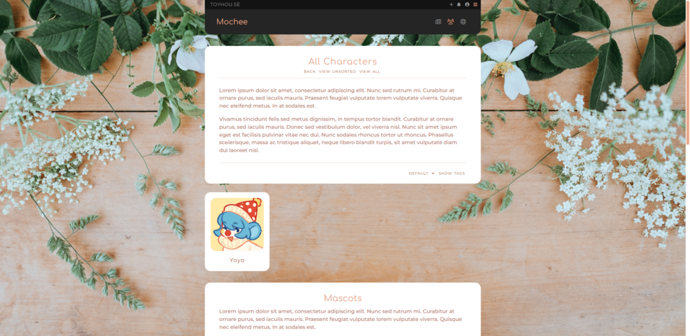 1 Toyhou.se SCSS using @import link and 1 HTML for custom sidebar links.